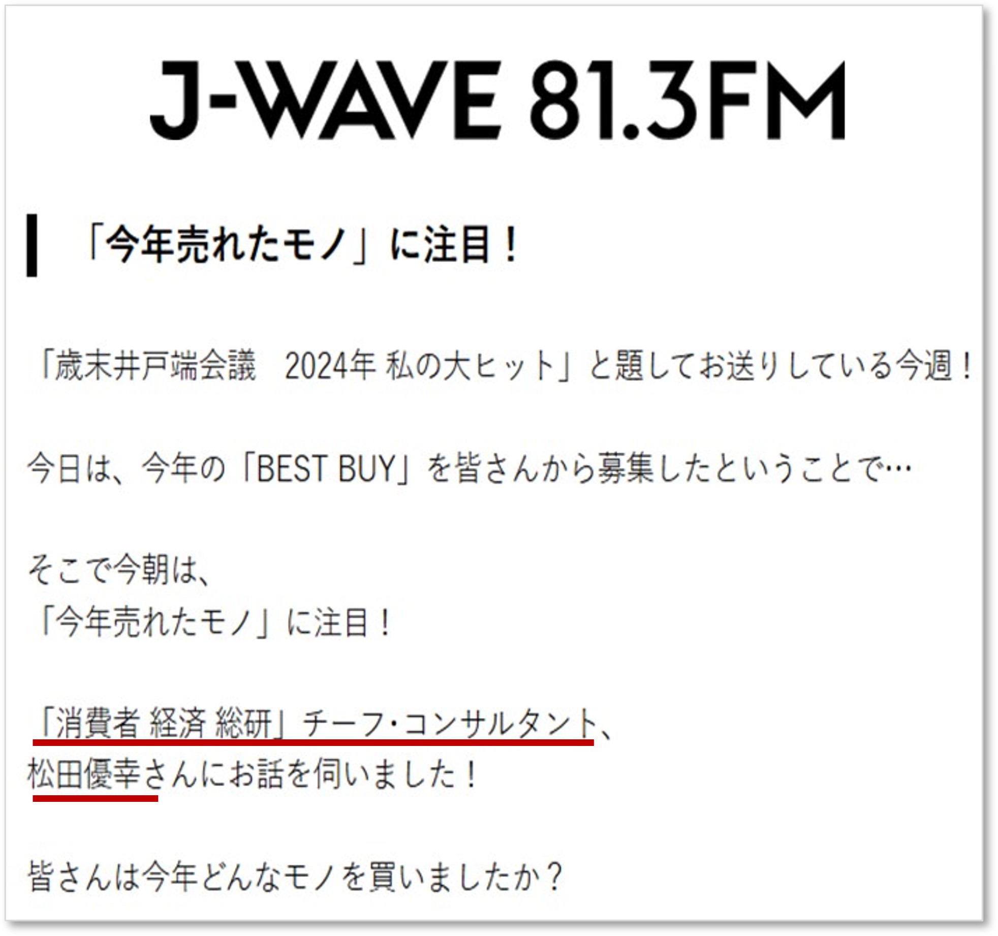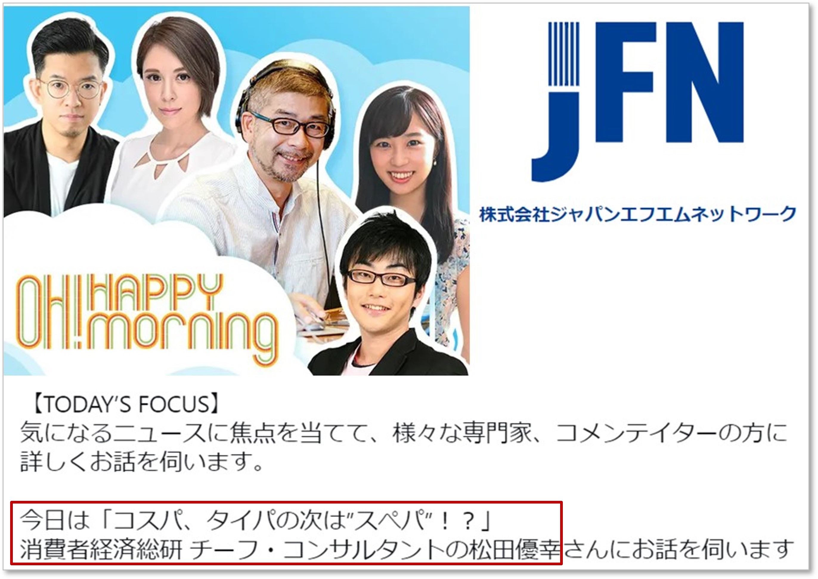 消費者 経済 総研 の 松田 優幸 が、出演しました