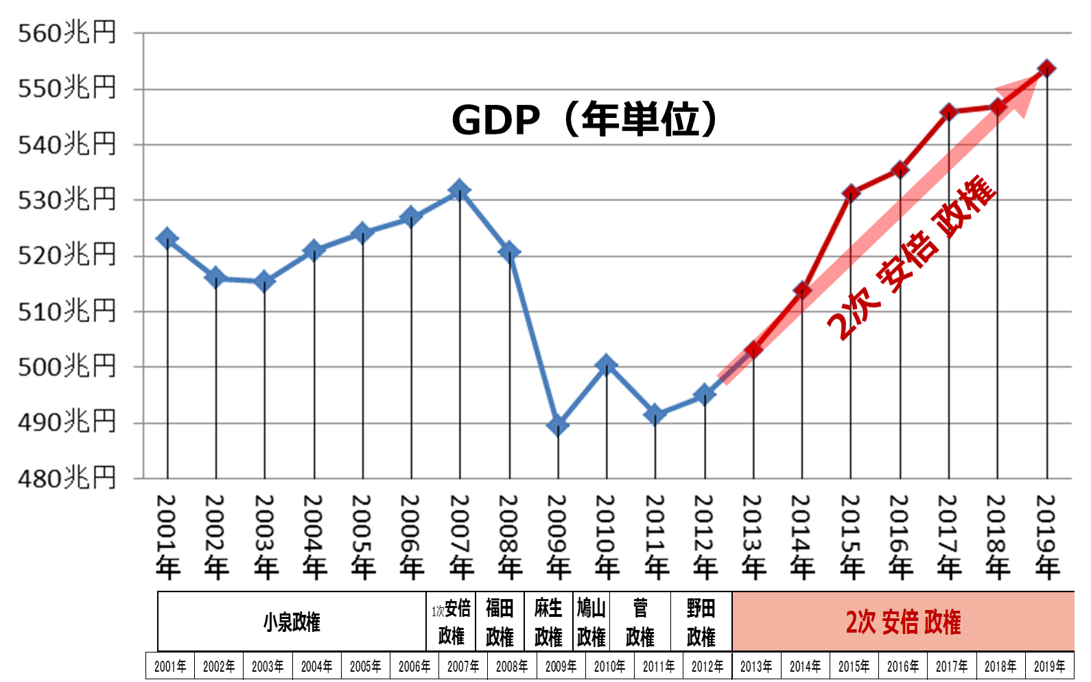 安倍内閣だけが GDPプラス成長だった?