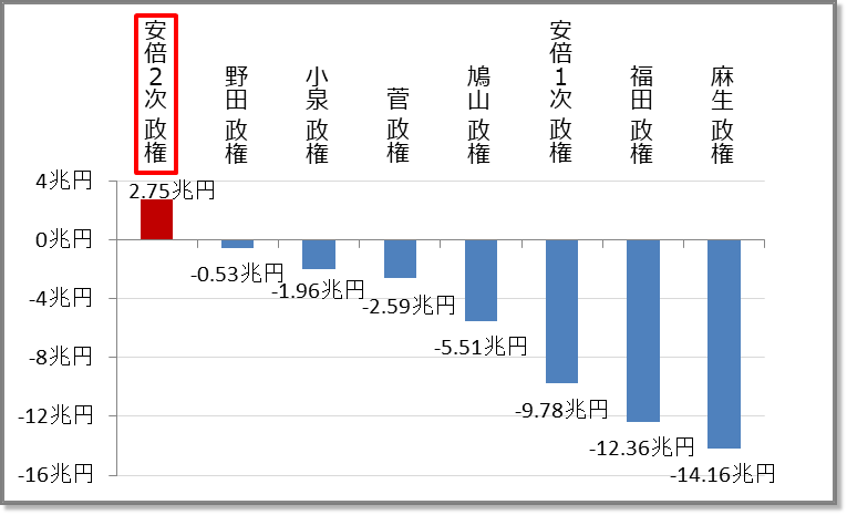 約20年間の8の内閣のGDP増加額の比較から、