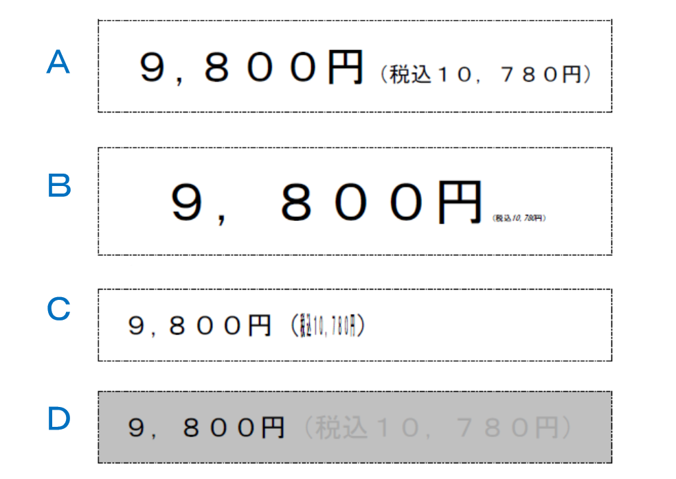 Dは、右側の税込表示が、