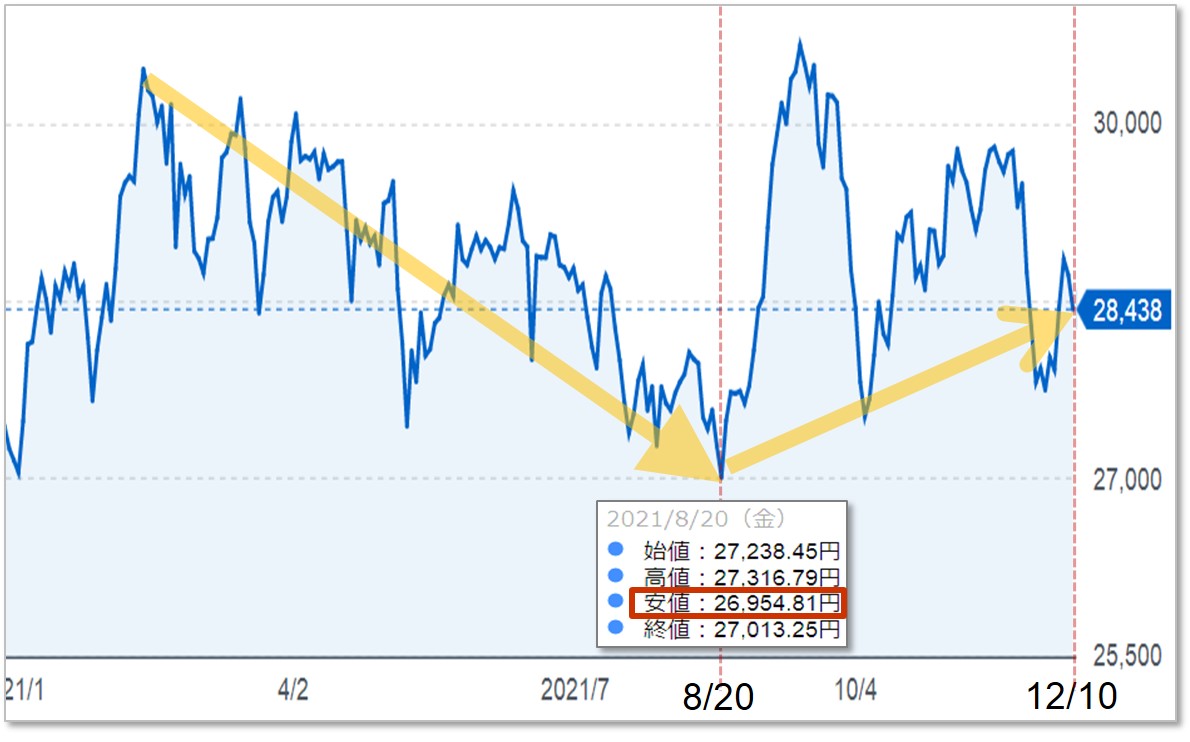 その後、日経平均は、下記のように推移した。
